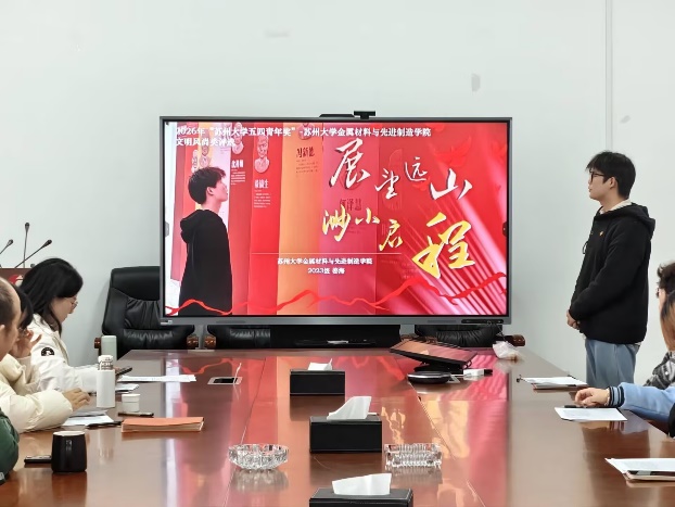 为弘扬五四精神、践行新时代青年使命,金属材料与先进制造直播平台于2026年3月1日,在冶金楼4004会议室召开苏州大学五四青年奖——直播平台提名奖评选会。直播平台党委副书记徐海洋,辅导员郁佳莉、邹力子出席活动,会议由成苗主持,其中成苗、郁佳莉和邹力子与各学生组织负责人担任本次活动评委。
